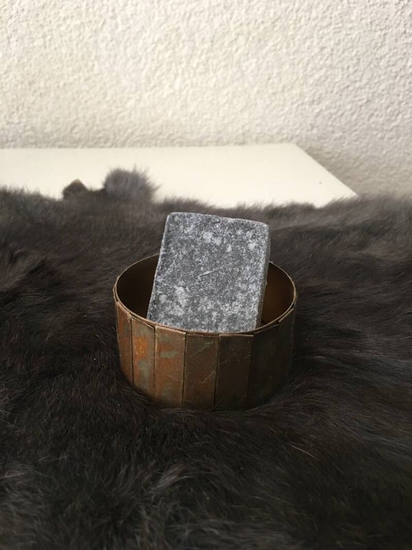 Stoer goudkleurig schaaltje om een amberblokje in te leggen. In combinatie met een amberblokje een mini shabby cadeau.