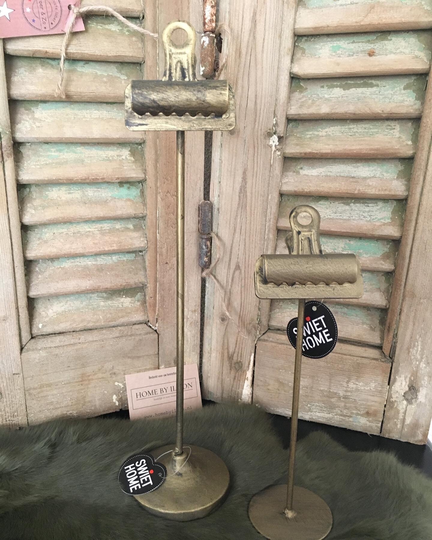 Superleuke set goudkleurige Fotoclips op voet. Van zware kwaliteit. Afmetingen circa: 9cm x 9cm x 38cm & 8cm x 7cm x 26cm.